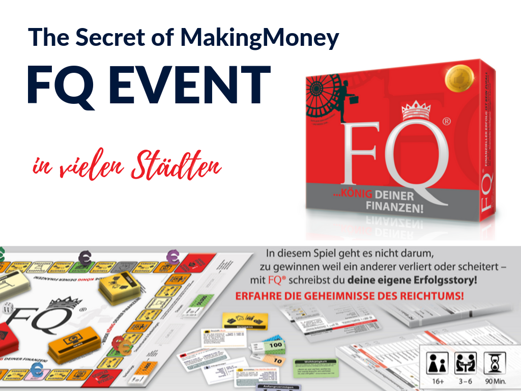 FQ ist ein “Reality Game for financial Freedom“, also ein Spiel, welches sehr nah an der Realität ist und dafür dient, uns näher zur finanziellen Freiheit und mehr Selbstbestimmung zu bringen.
